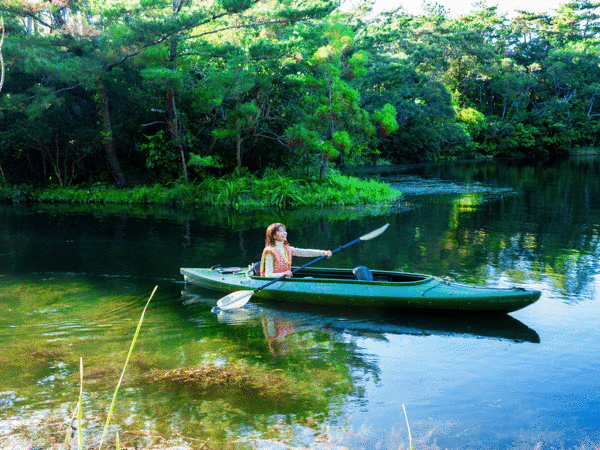 ビオスの丘の静かな湖をカヌーでゆったり水上散歩してみませんか~( ” ◡ ” )