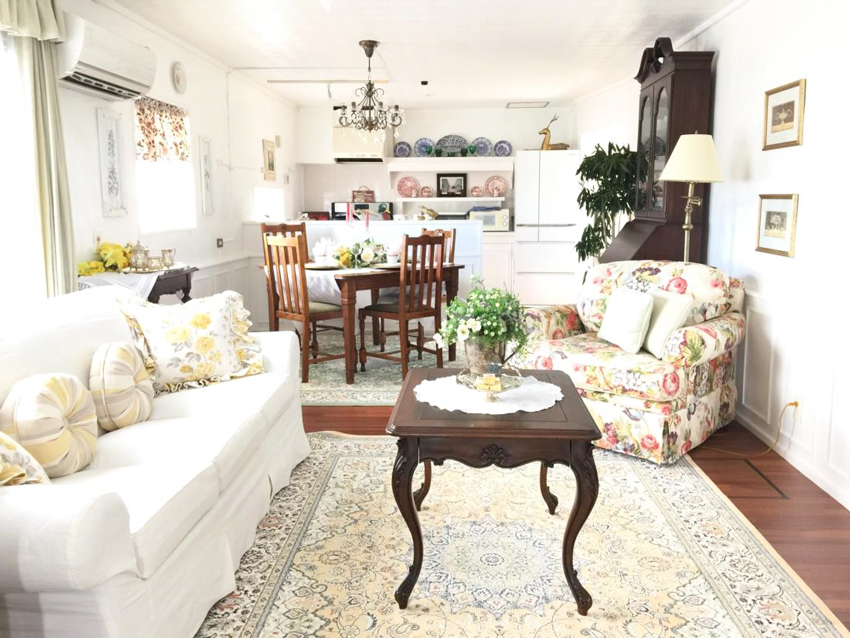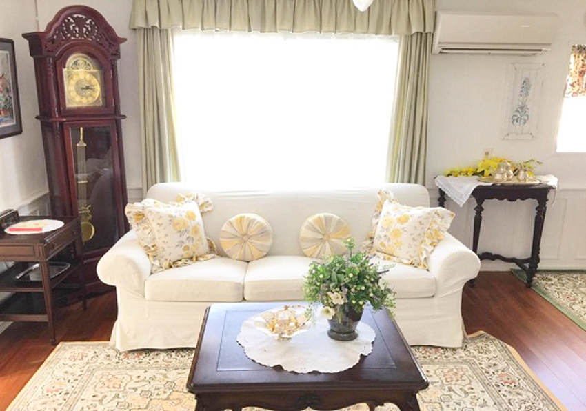 リビングにはおしゃれなクッションと肉厚で座り心地の良いソファ。品のある絨毯が高級感を演出し、あれ?今の私ちょっとセレブ?な気分になっちゃいます ^ ^(笑)