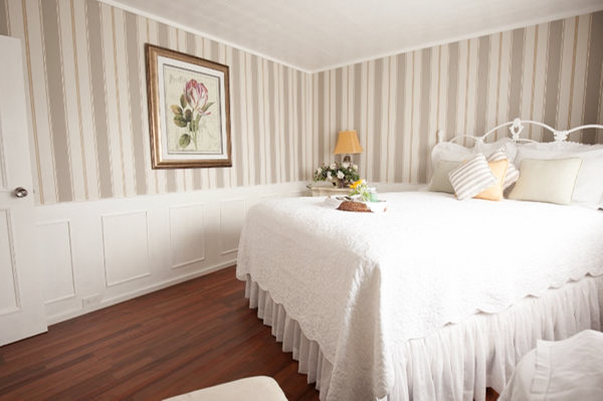 お子様や女性に人気のベッドルームは、ベッドのデザインや壁紙が可愛らしく、装飾品のキャンドルとお花が印象的。