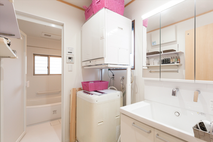 洗面脱衣所には、長期滞在はもちろん短期滞在の方にもうれしい全自動洗濯機と衣類乾燥機が用意されています♪海で遊んだあと、汗をかいたお洋服など、すぐに洗濯できるのが嬉しいですよね。