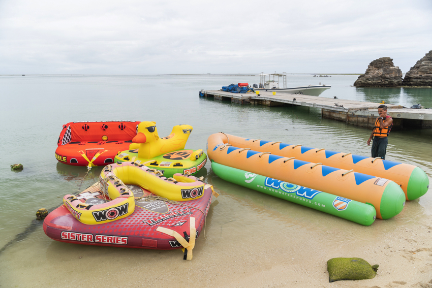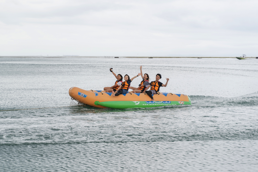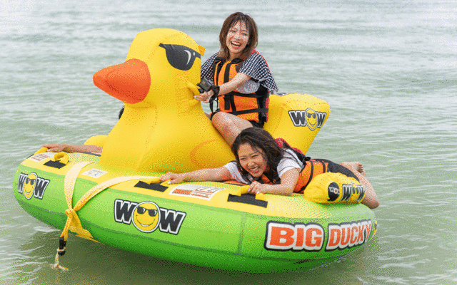 マリンスポーツの王様と言えば「ドラゴンボート」(別名 バナナボート)ですよね!!人数が多ければ多いほどみんなでワイワイできるので、4人以上で遊ぶ人たちには絶対選んでほしい一品 ^ ^