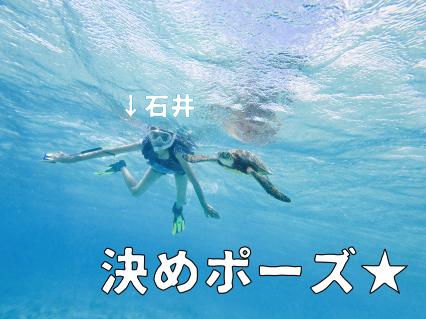 付き添いのスタッフがボディボート(浮力体)を持っているので、不安な人はそれにつかまりながらウミガメを見ることができます(╹◡╹)