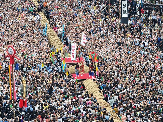 大綱挽本番が始まると27万人を超える観衆で大綱がまともに見えなくなるほどΣ( ̄□ ̄|||)