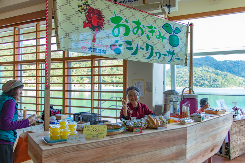 大宜味村の特産のシークヮーサーを使ったゼリーのほか、サーターアンダギー、ジューシーなどの軽食も販売!