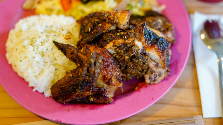 ローストチキンプレートは「がちまいチキン」と「旨辛チキン」があり、今回は旨辛チキンをオーダー。