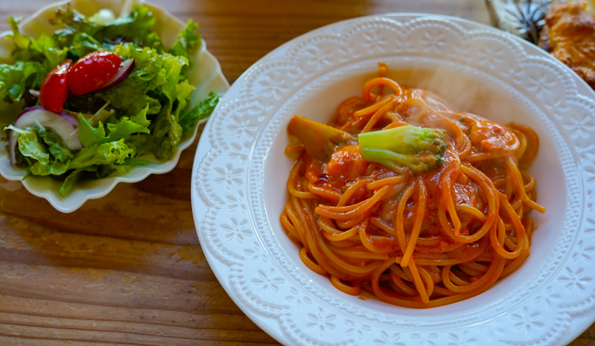 パスタは月1ペースでメニューが変わるそうで、私は「エビトマトクリーム」パスタを味わうことができました。