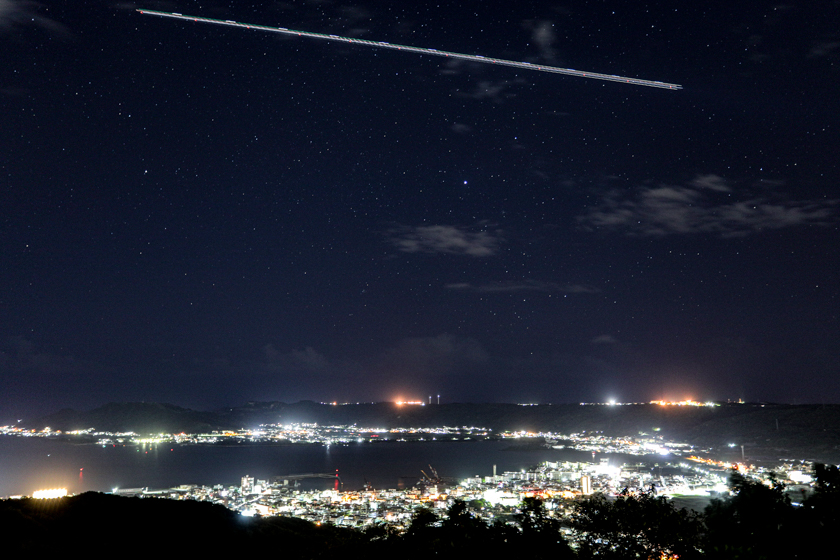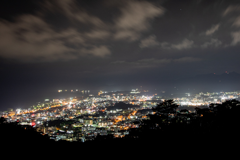 日が落ちた後は煌々と街灯りが浮き立ち、眼下に一面に夜景が広がります。海抜が高く開けている事もあり県内でもトップクラスの眺望の良さを誇ります。