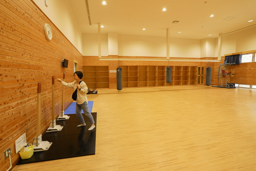 空手会館には、資料棟の他にも赤松の無垢材が床一面に使用された道場、鍛錬室や一般の会議でもつかえる研修室まで完備されています!