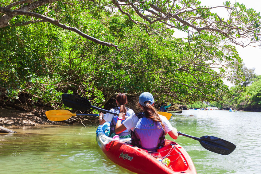 釣りで青い海を楽しんだ後は、深緑しげるマングローブ林の中をカヤックでゆったり穏やかに散策します^^