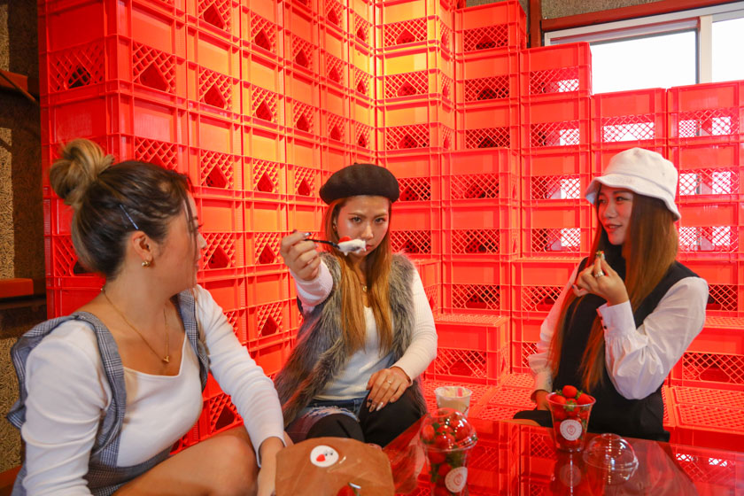 せっかくいちご狩りで有名な「美らイチゴ」に来たので、体験もしてきました♪