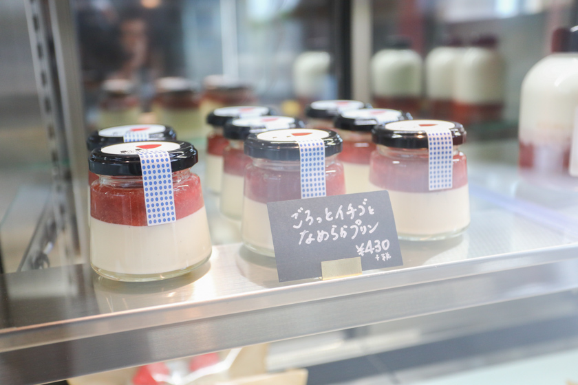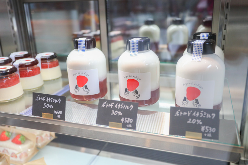 3種類のいちご濃度が違ったボトルドイチゴミルクに、ごろっとした果実が楽しめるプリン、この他にもいちごを使ったかき氷やクリームソーダまで、いちごづくしの商品が魅力的☆