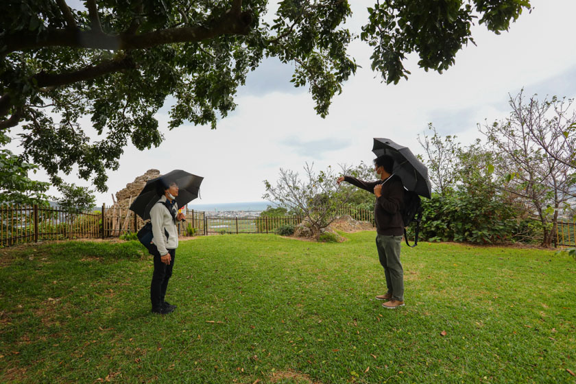 今回ガイドをしていただく相澤さんと南城市役所にある