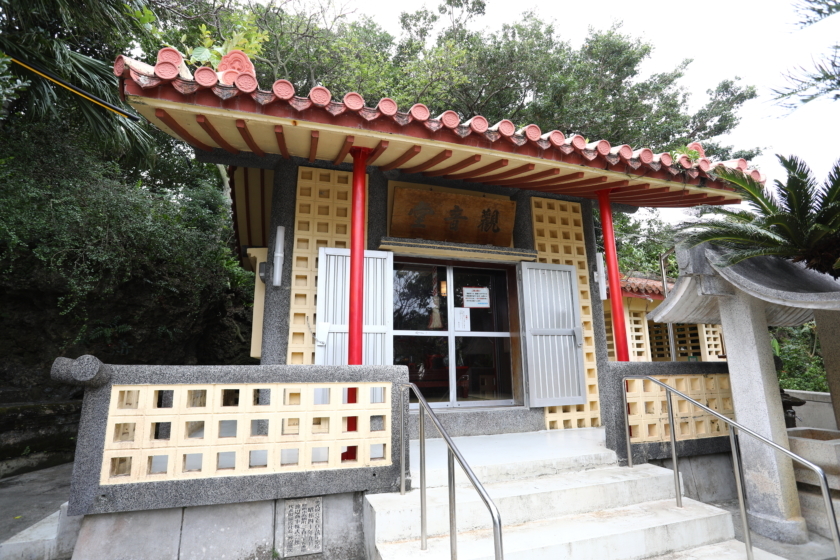 島の中央には十七・十八世紀頃に遭難した唐の船が奥武島に漂着し、これを島民たちが救助をし介抱した、お礼として唐から琉球王朝を介して贈られた黄金の観音像を安置した観音堂があります。