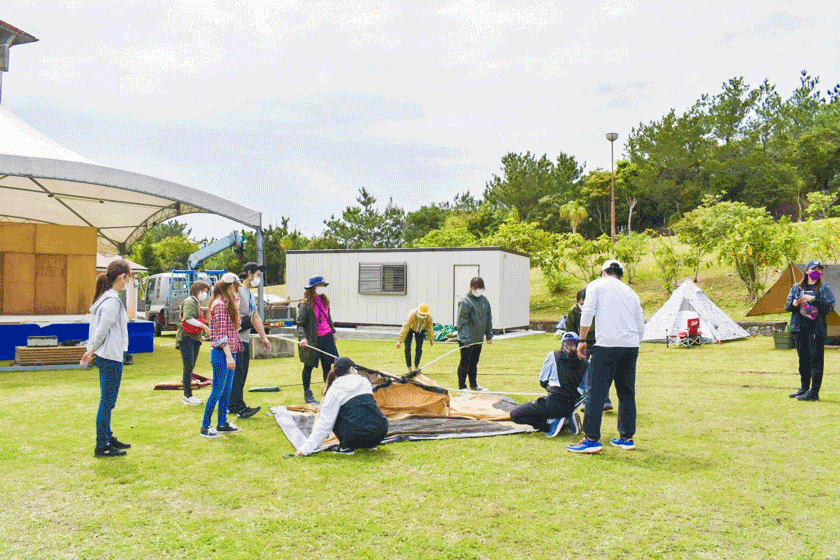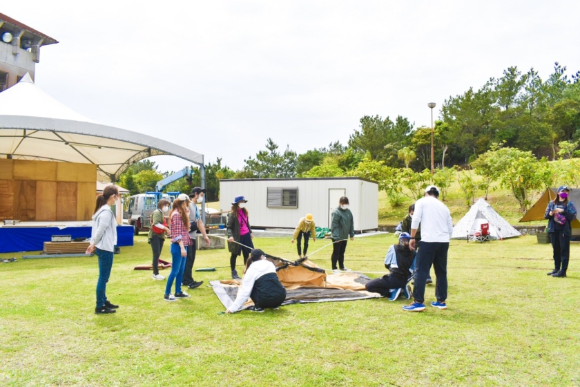 イベントの始まりは、テント設営講座から!