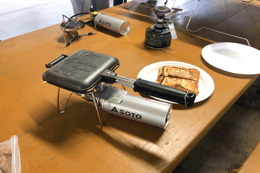 朝ごはんは、バーナーとホットサンドクッカーを使って、ホットサンドを作っていきます!