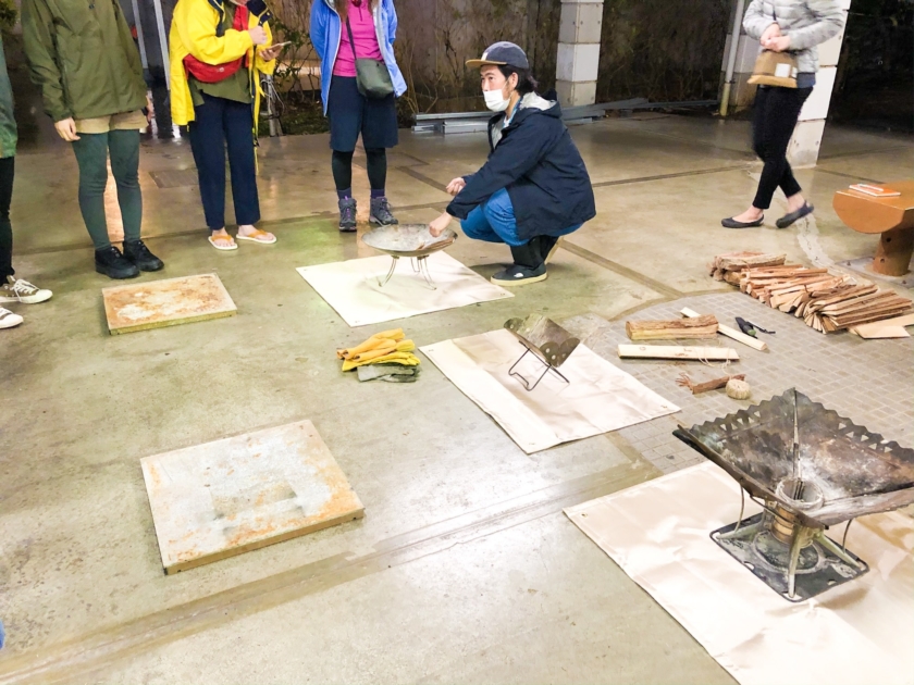 1グループごとに焚き火台が1台、ナイフやファイヤースターター(火打石のような着火できるアイテム)を使い、1人ずつ本格的に焚き火を始める段階から体験できます♪