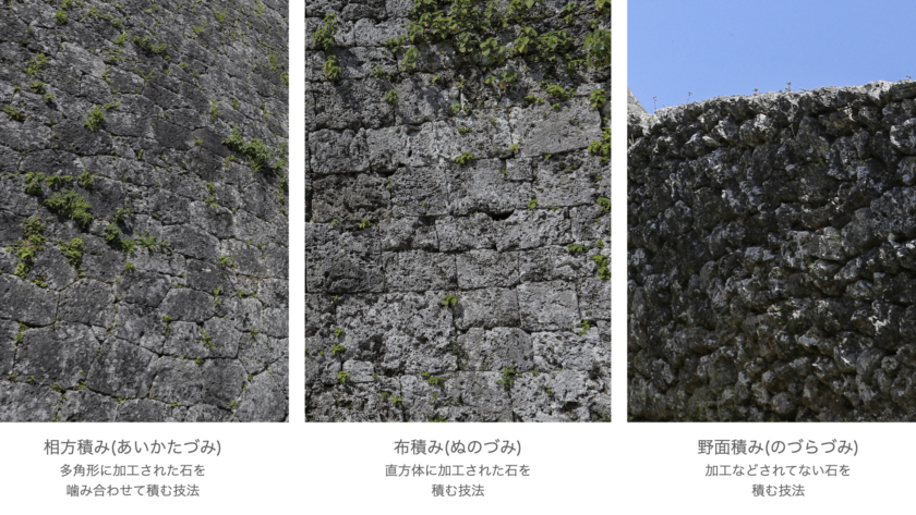 座喜味城跡では沖縄のグスクで見られる3種類の石の積み方が全て見られますよ。