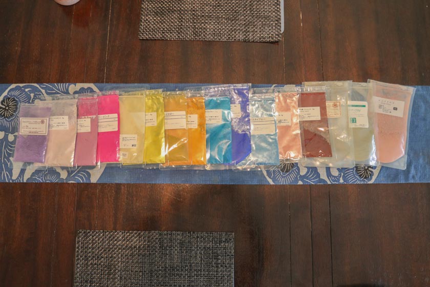 着色に使うものは色付きの土(クレイ)や鉱石(マイカ)などですよ