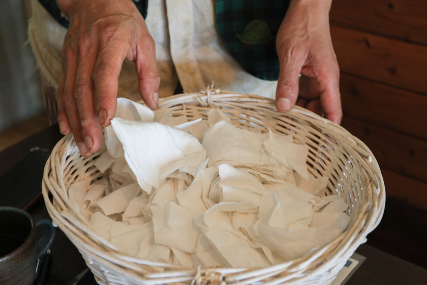 藤川さんのお宅では、古くなって捨てる服などを小さくカットして、食器の油汚れを拭き取ってから食器を洗う様にしているそうです。そうすることでお湯で落とせたり、使用する洗剤の量が減らせますよと教えてもらいました。