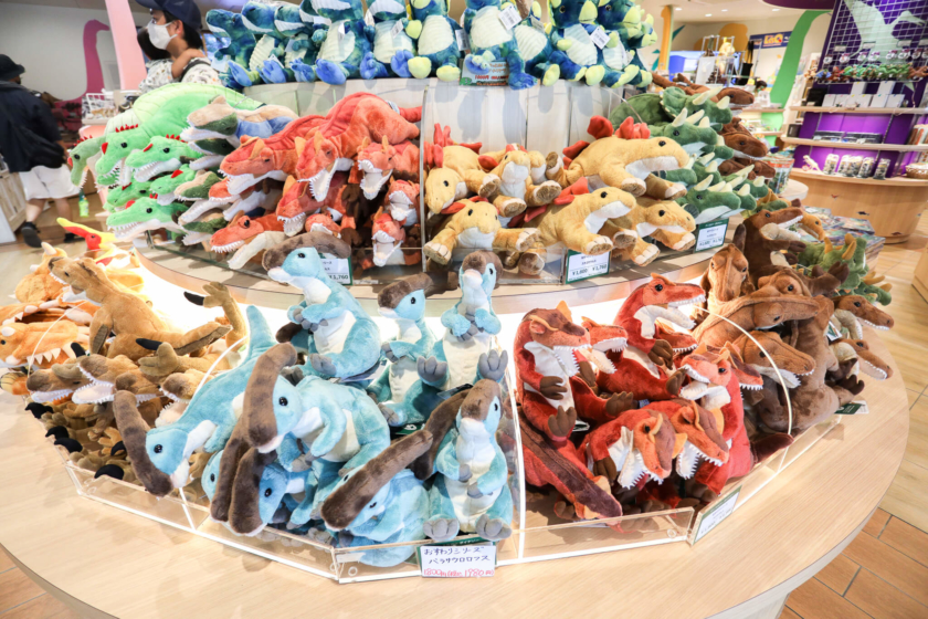 グッズの数々は、リアルなフィギアから可愛らしい恐竜に関連した商品、オリジナルのアイテムなど恐竜づくし♪