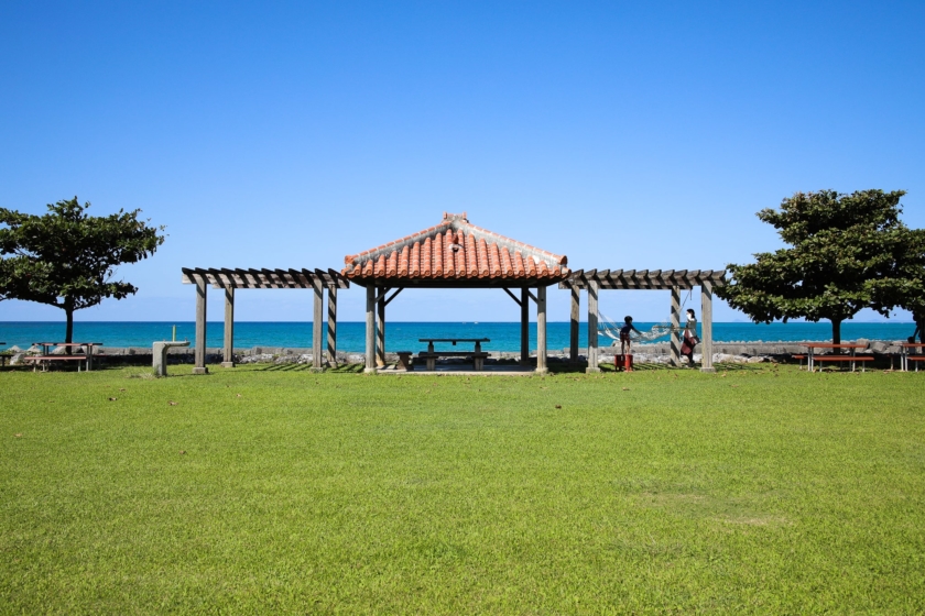 お店のすぐそこには、広々とした芝生にベンチやハンモックなどもあり、綺麗な景色をゆったりと満喫できます♪