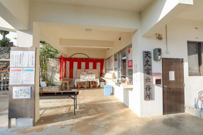 本殿を正面に右手側に授与所があり御守や御朱印を拝受できます。また末吉宮の御朱印や御守は波上宮の授与所にて拝受できます。祈祷は授与所左手の社務所で受付ています。
