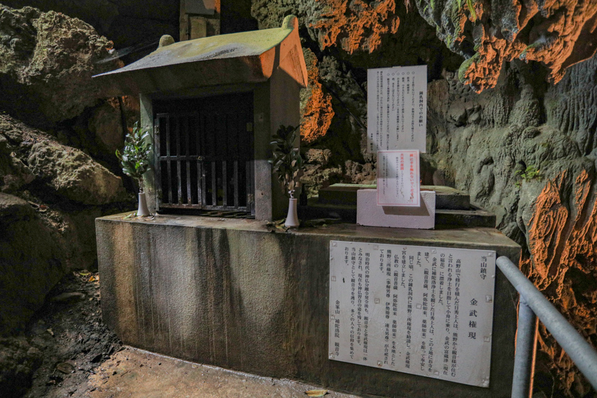 日秀洞にはいり、階段を降りてすぐ左手に「金武権現」の祠が鎮座しています。