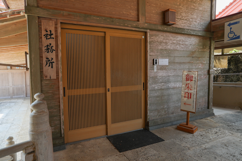 御本堂の左手には寺務所があります。金武観音寺のお守りや御朱印を御拝受することが出来ます。