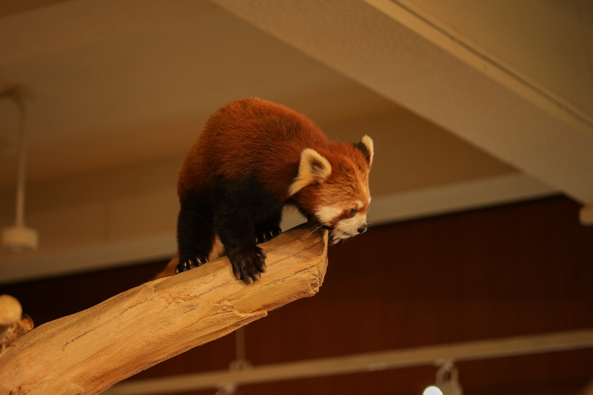 カフェスペースでは1回300円でレッサーパンダの餌あげ体験が出来ちゃう♪