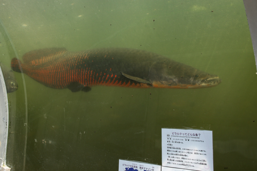 南米アマゾン川に生息する大型の魚を間近で見ることができる水中トンネルは『ピラルク』が圧巻です。「生きた化石」とも言われ約1億年前から姿がほとんど変わらない世界最大級の淡水魚。