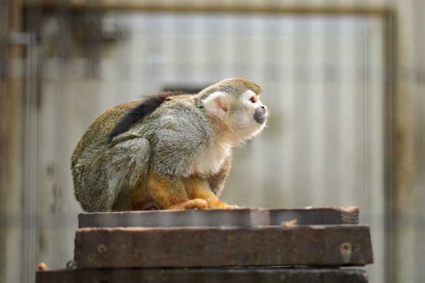 リスザルの名称で親しまれている小型のサル。さまざまな動物園で見かけますよね!