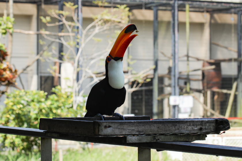 黄色い大きなクチバシが特徴。全長の約3分の1がクチバシで体長に占める割合が鳥類最大。
