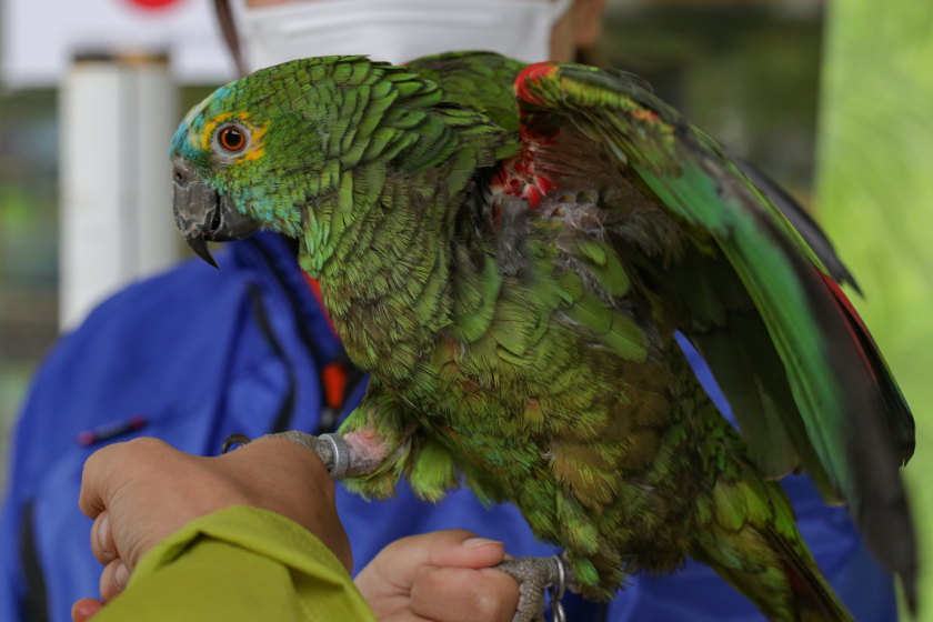 アオボウシインコの「ステイシー」もお見送りしていて、握手をさせてもらったよ!