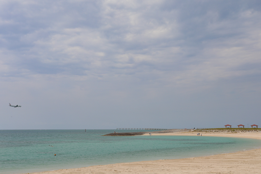 那覇空港に離発着する飛行機を見ながらのんびりしたり、4月〜10月の遊泳可能期間であれば海水浴だって!コインシャワーや更衣室もあるので海水浴後も安心です。ふらっと散歩出来る距離なのでバス待ちの間にどうですか?