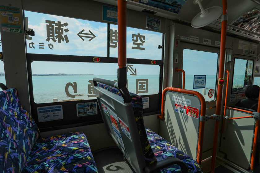 瀬長島に入っていくと車窓から海も見えてきました。バスの車窓から海が見えるとワクワクしますね〜降車の際はボタンを押してお知らせください。次停まります。