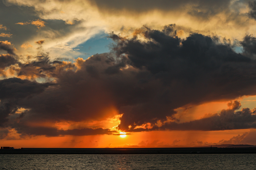 沖縄のサンセットというと海に沈んでいくイメージかもじれませんが、瀬長島から夏の時期には慶良間諸島の後ろに沈み、島に沈みゆく太陽を望むことができるんですよ〜