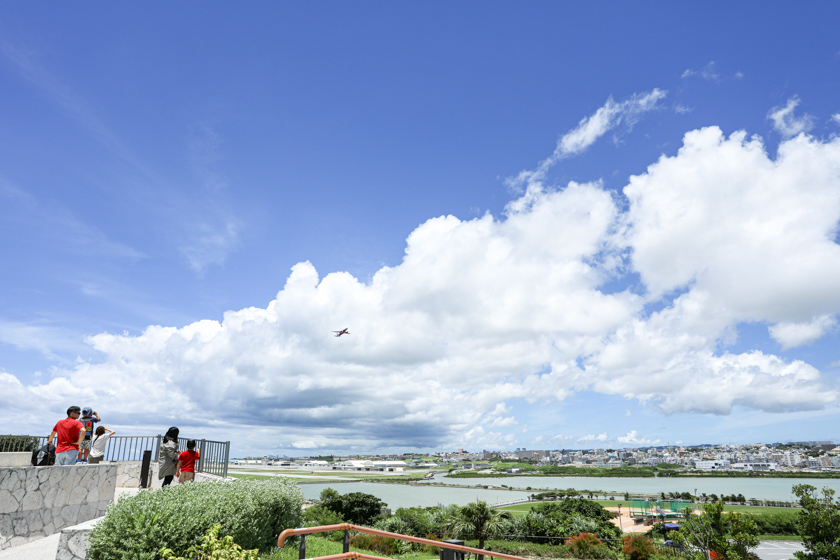 瀬長島は小高い丘になっており、ウミカジテラスの反対側には展望公園があり、視界も開けており広々と市街地側の景色や那覇空港に離発着する飛行機を見る事ができます。ウミカジテラス側から見る景色とはまた違った光景を楽しめますよ。