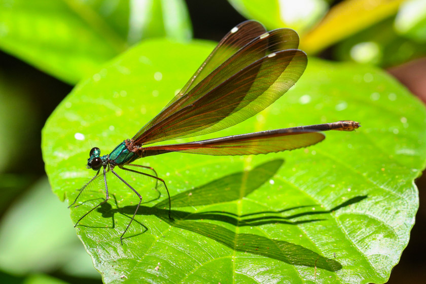 「リュウキュウハグロトンボ」が葉っぱの上で休んでいました〜