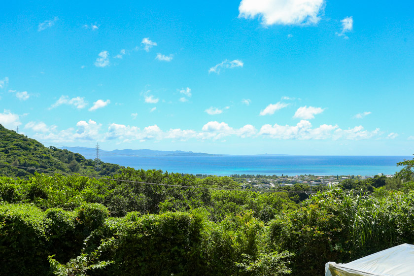 バスに乗り、車窓から沖縄本島最高峰の「与那覇岳」登山道入り口前を通過。