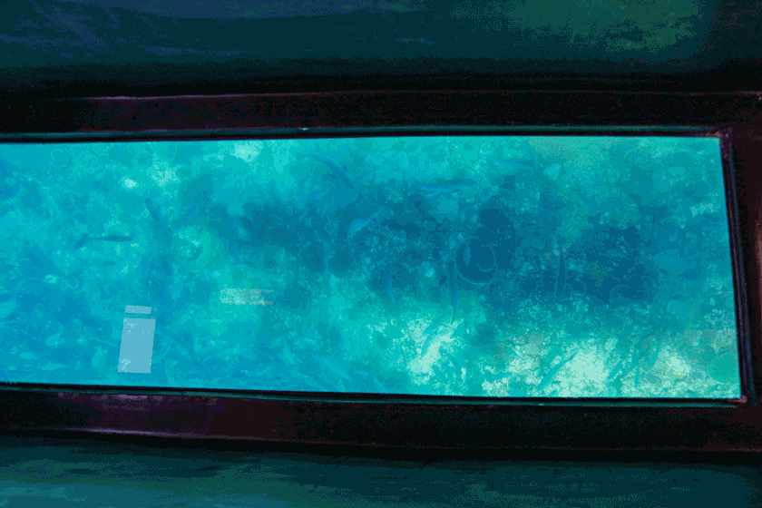 グラスボートに乗り込んで直ぐにサンゴ礁があらわれ熱帯魚達を見ることができます。