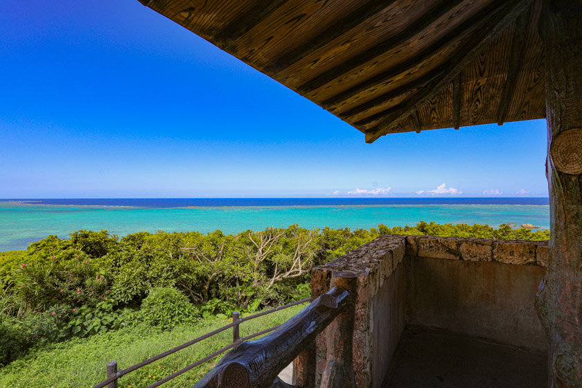 東屋のある展望台で涼みながら、眼下にはサンゴ礁が広がる青い海を見れる♪
