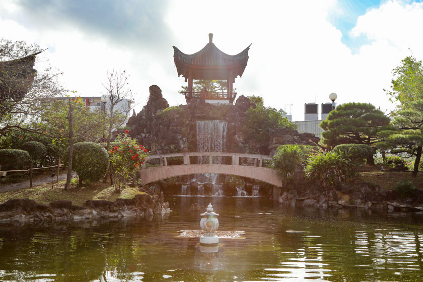 福州園のある那覇市久米は、琉球王国時代に福建省から移住してきた人々が住んでいた、久米村「クニンダ」があった場所で、縁のある地なんですよ。