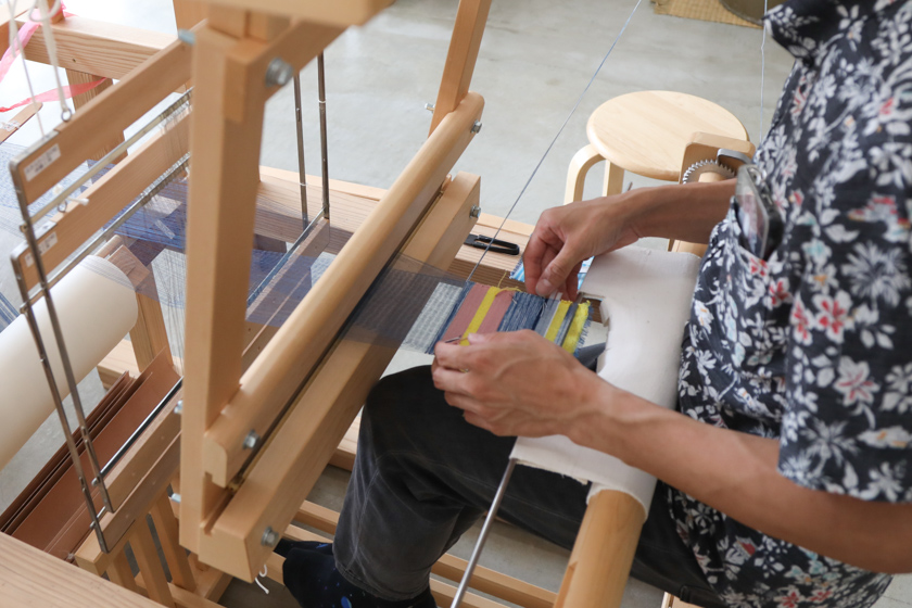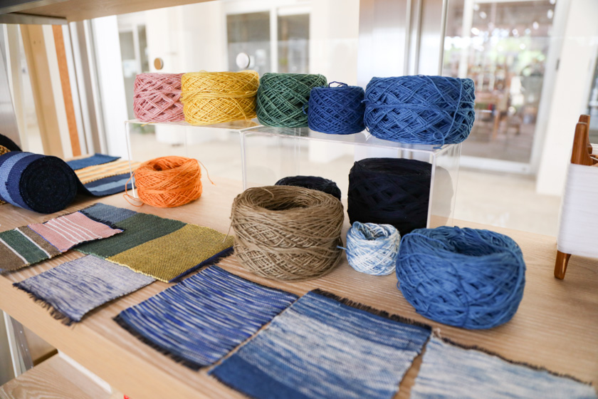 ヨコ糸は藍染の糸だけでなく、フクギや月桃で染められた糸なども用意されています。
