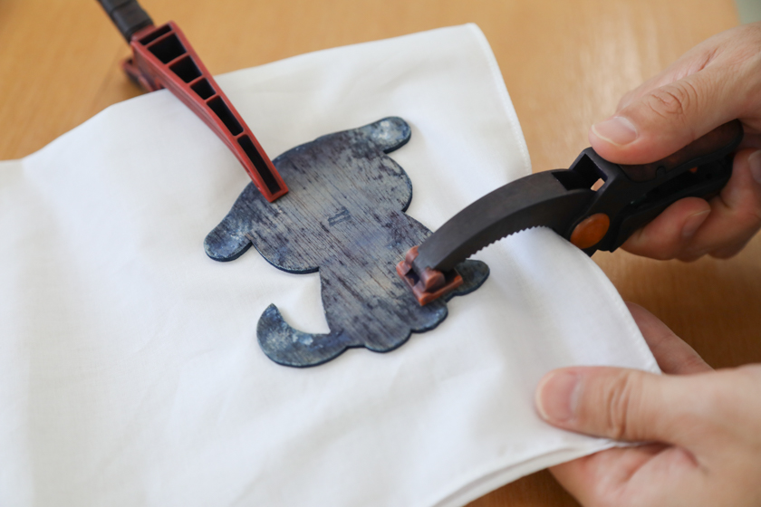 最後に裁断したら、世界に一つオリジナルコースターが完成。