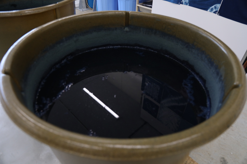 泥藍を水で溶かし木灰汁や消石灰を入れた後、