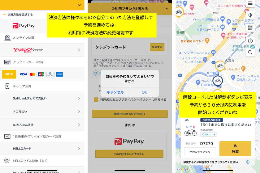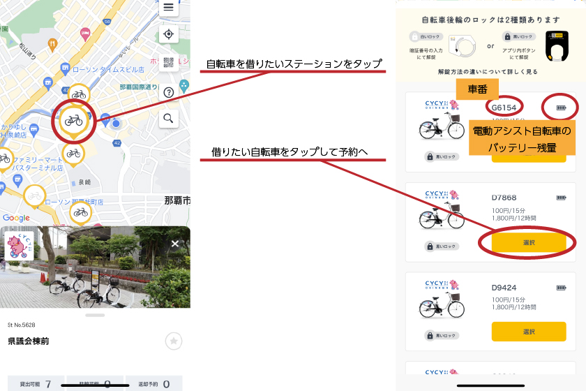 車両番号を確認して自転車の近くでロックを解除してくださいね。