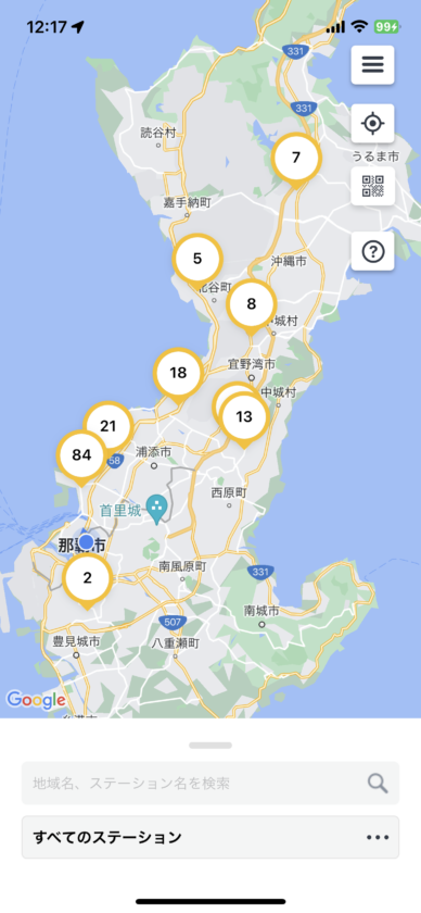 アプリを開くと自転車マークのアイコンが表示されていてタップするとステーションの詳細が見れます。