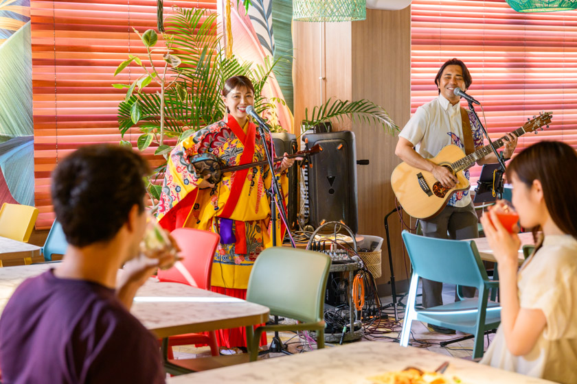ディナータイムには、沖縄ライブ演奏も開催され、美味しい沖縄料理とともに生演奏を楽しめちゃいますよ。