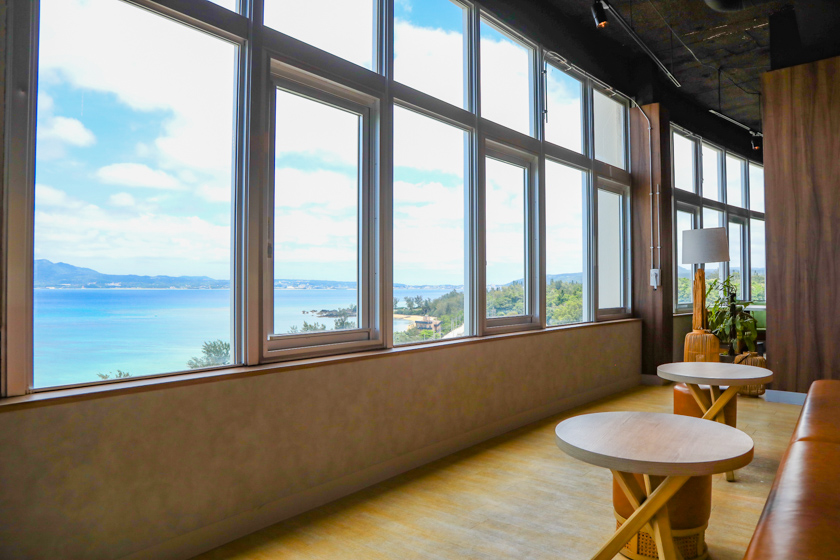 ラウンジはオーシャンビューで、窓際に向かってのソファー席があります。さらにホテルは西海岸エリアなのでサンセットを見ることも!