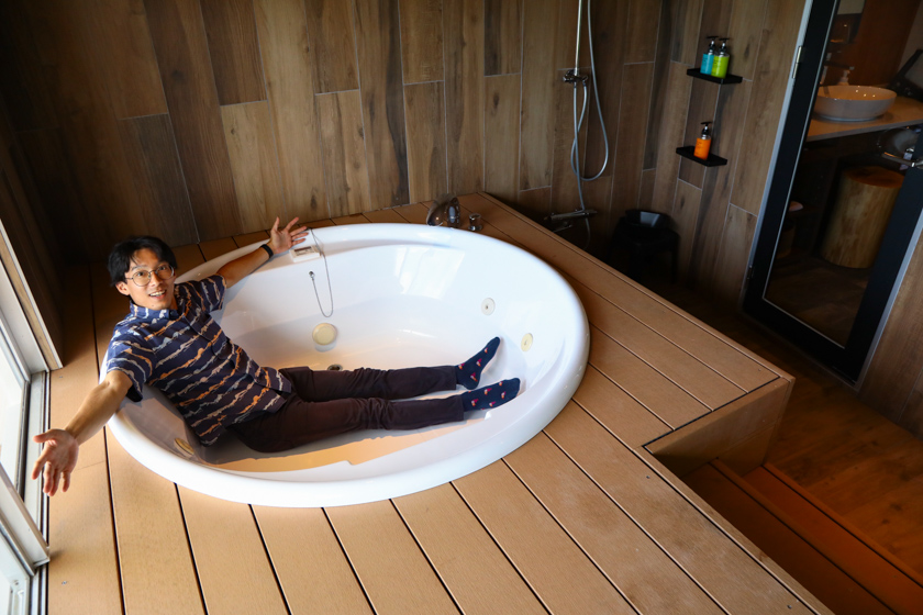 1階にはシャワー室、2階に大人でもゆったり入れるジェットバス付きのバスルームがありますよ!ホテルには大浴場やプールがないので、ジェットバスは子供が喜ぶポイントにも!